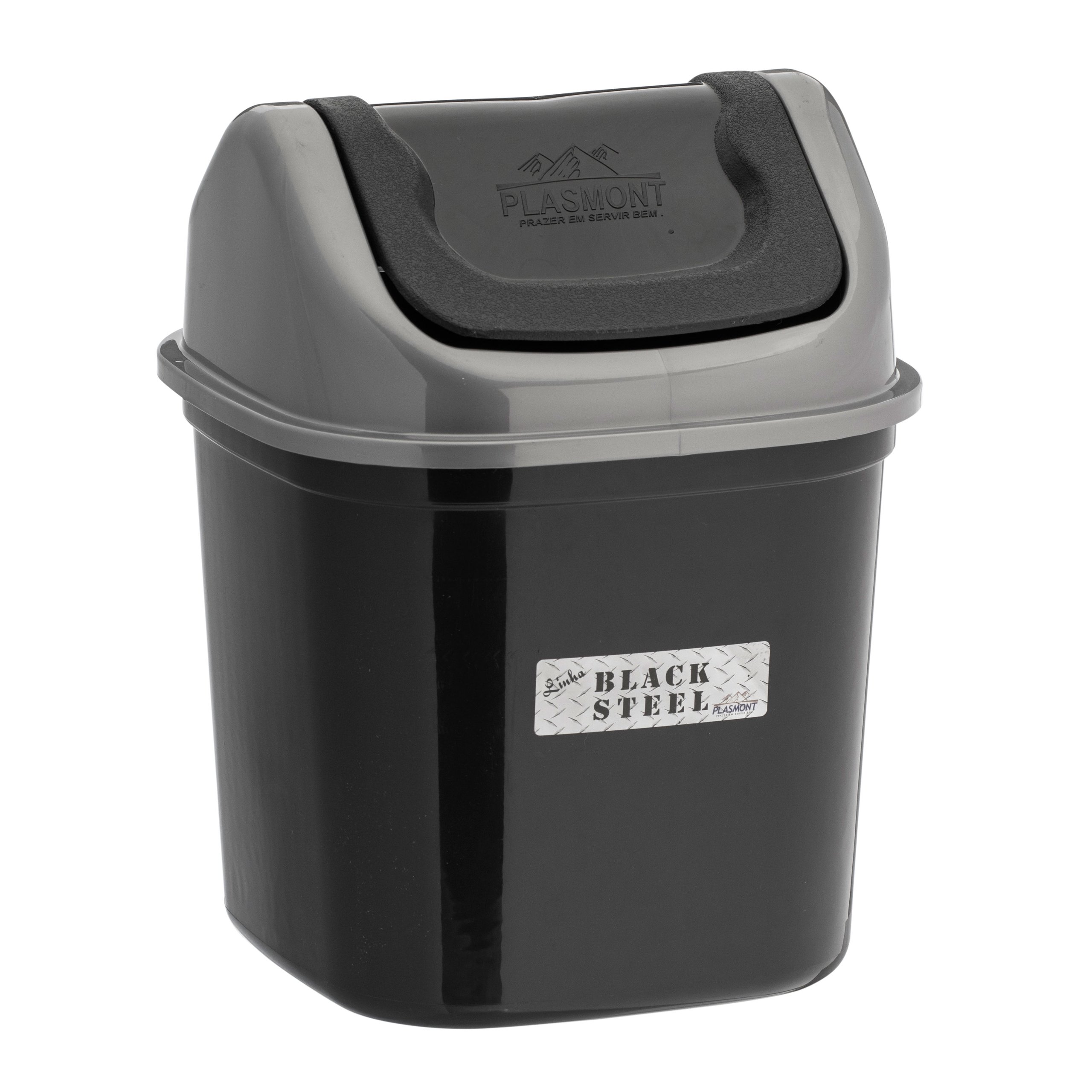 / LIXEIRA PLASMONT QUADRADA BASCULANTE BLACK STEEL – 7L