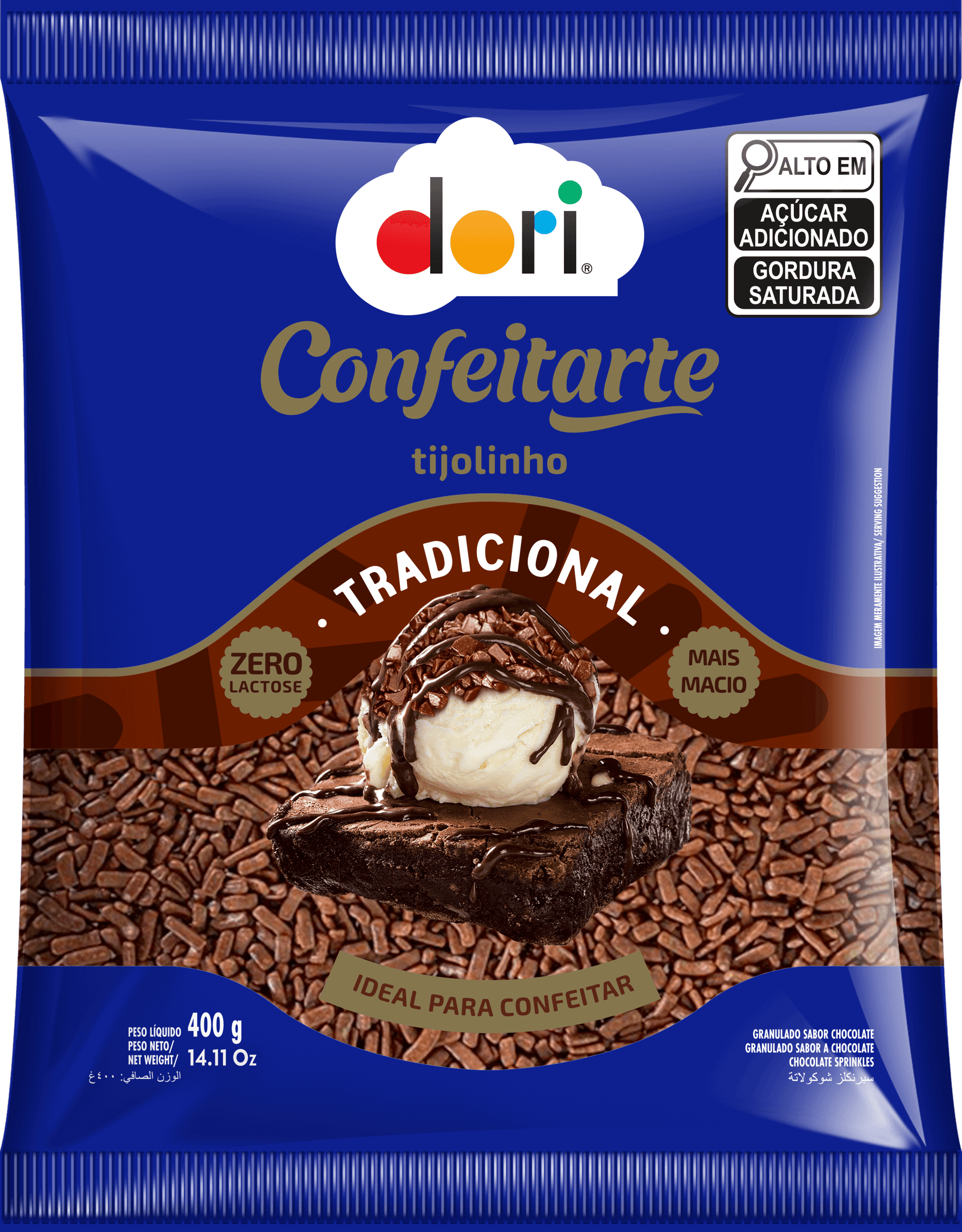 CONFEITO TIJOLINHO DORI CHOCOLATE - 400G quantidade
