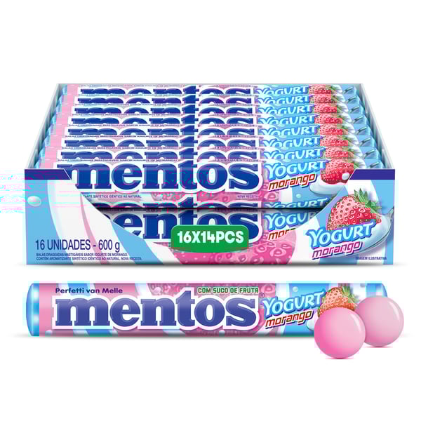 MENTOS STICK MORANGO E YOGURT – 16UN X 37G