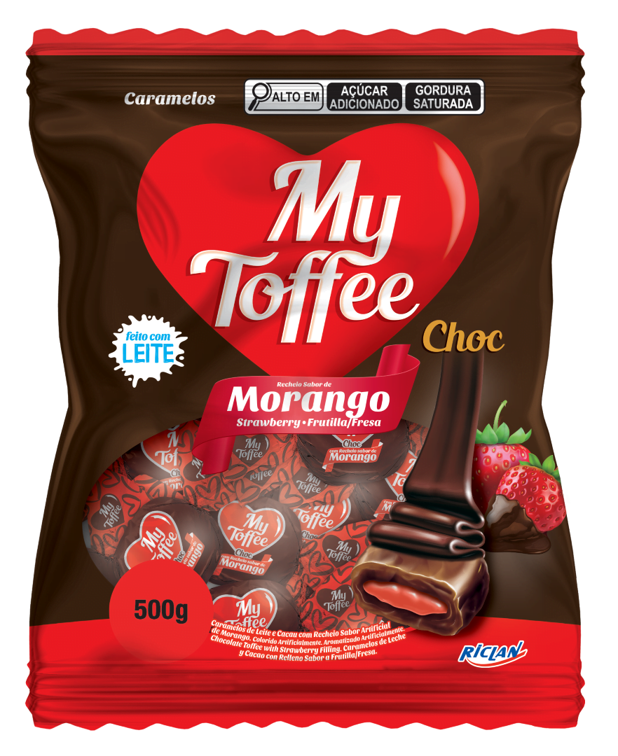 / BALA RICLAN MY TOFFE CHOCOLATE COM RECHEIO MORANGO – 500G